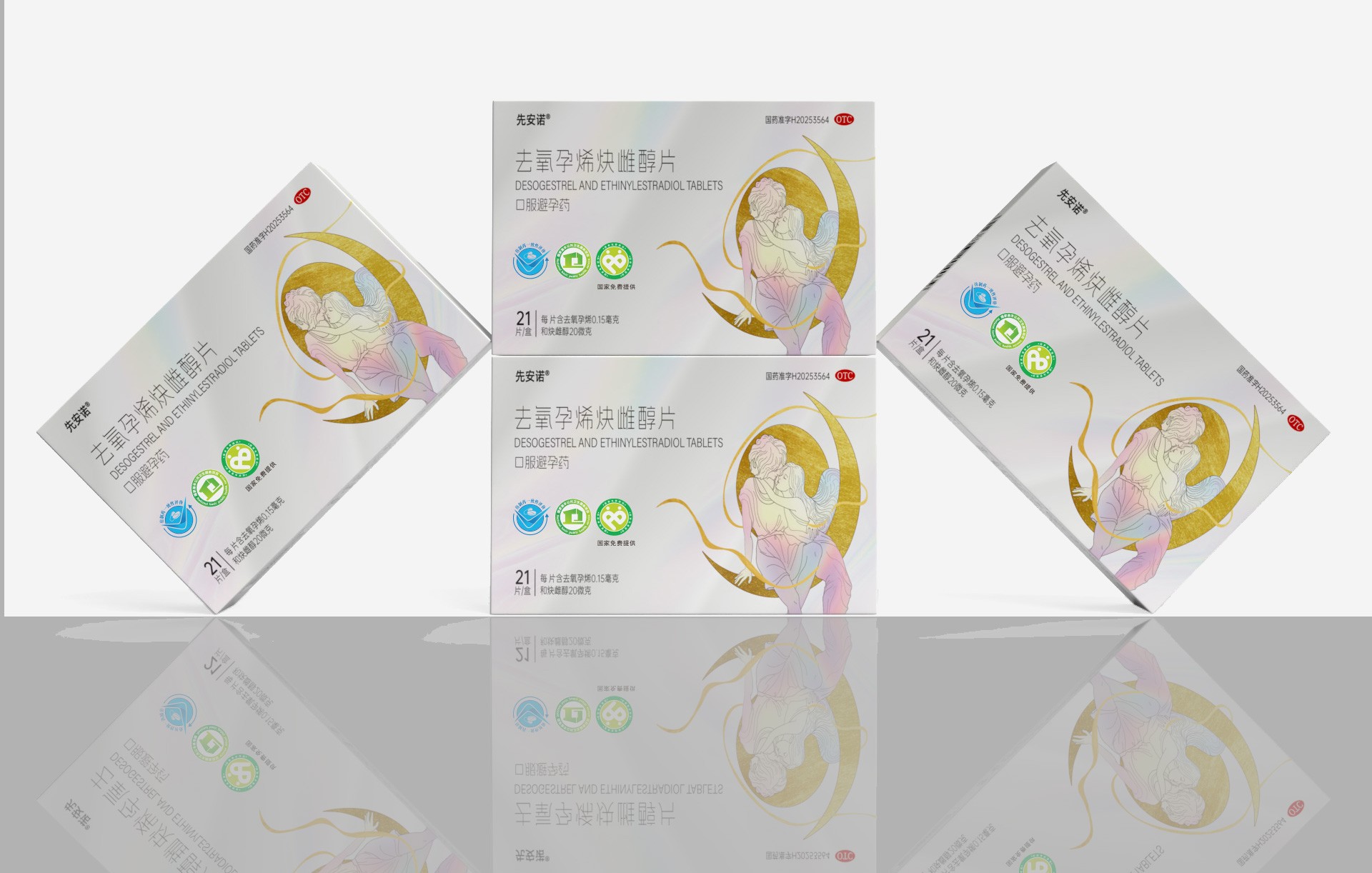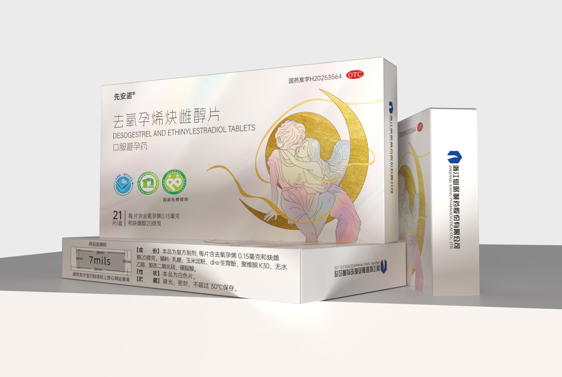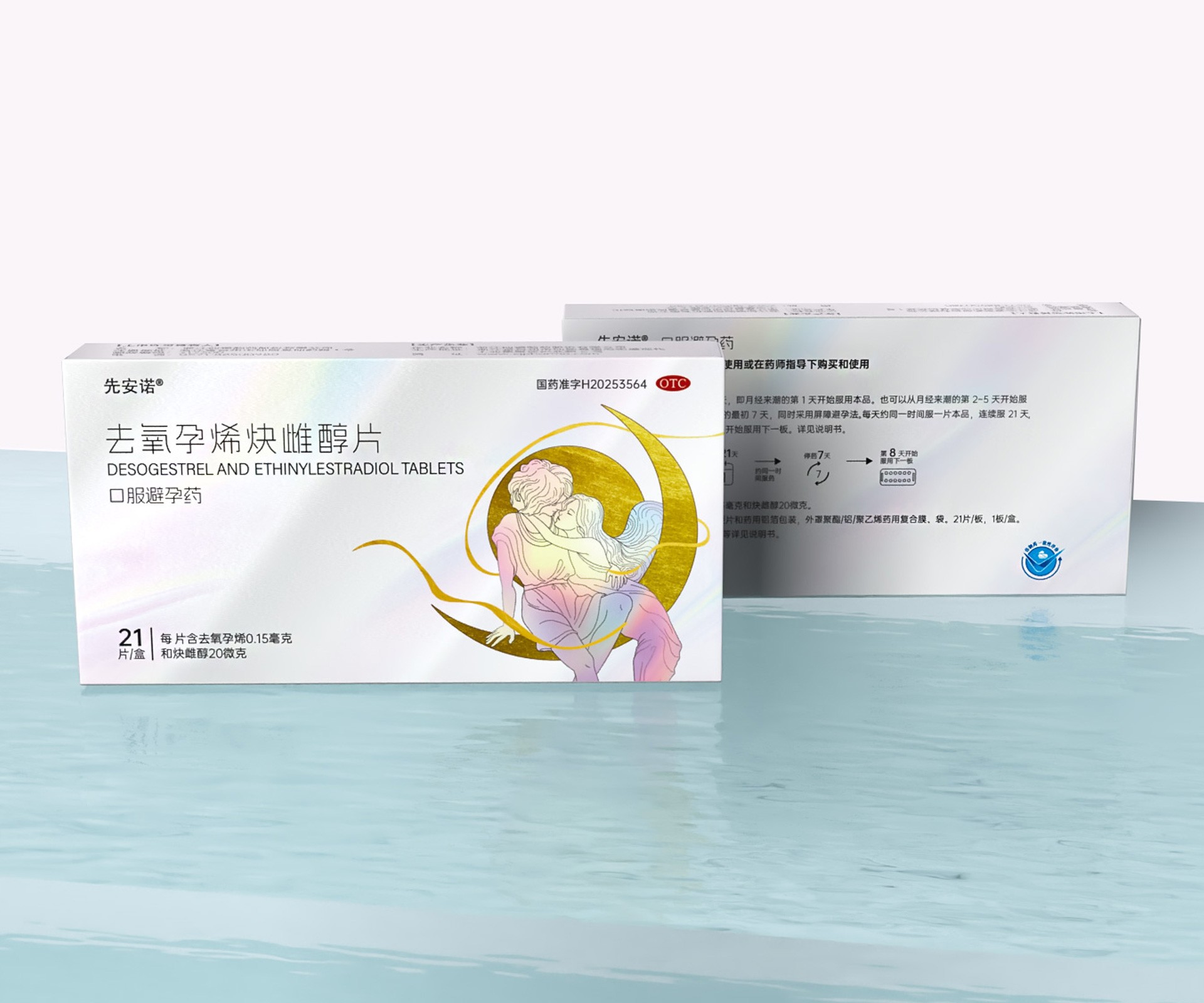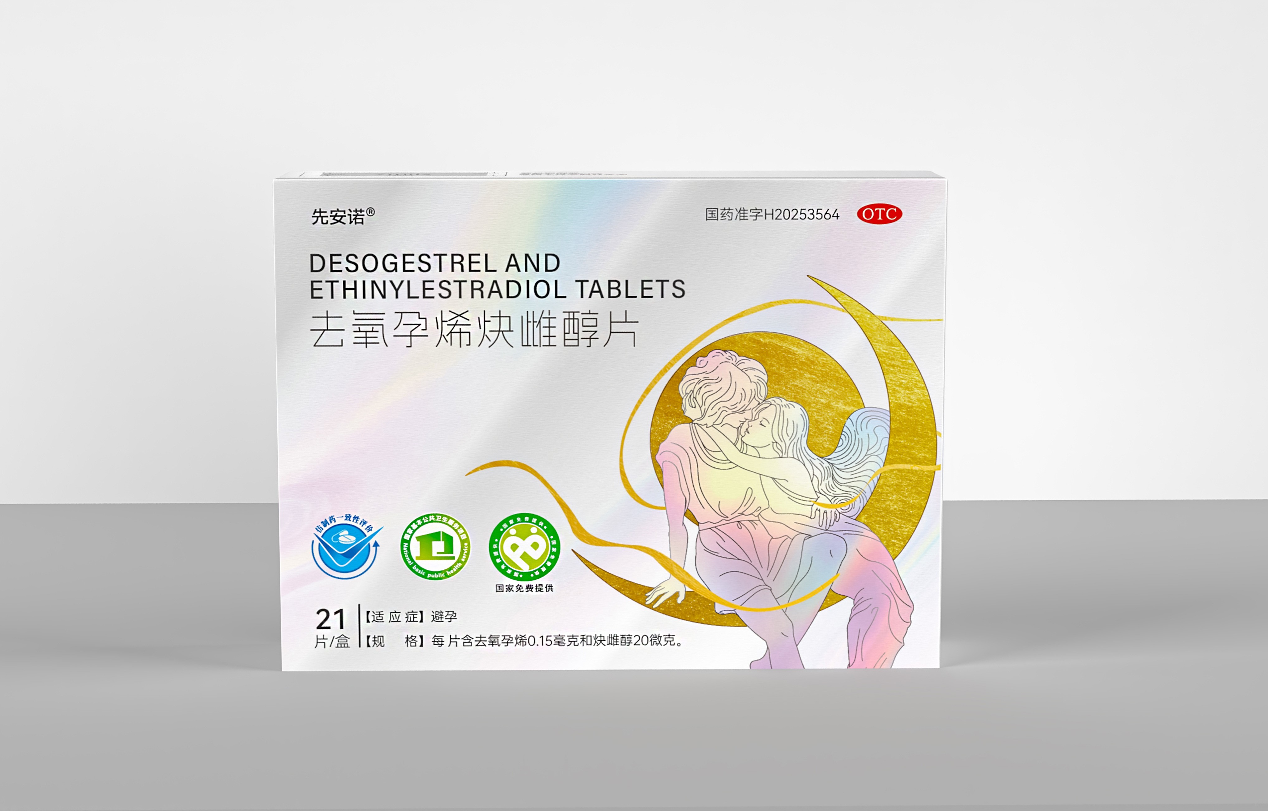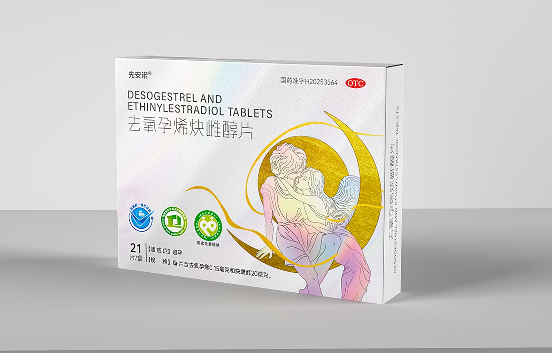 • 正面:突出產品通用名“去氧孕烯炔雌醇片”及品牌名“先安諾”,強調“長期避孕”核心功效;