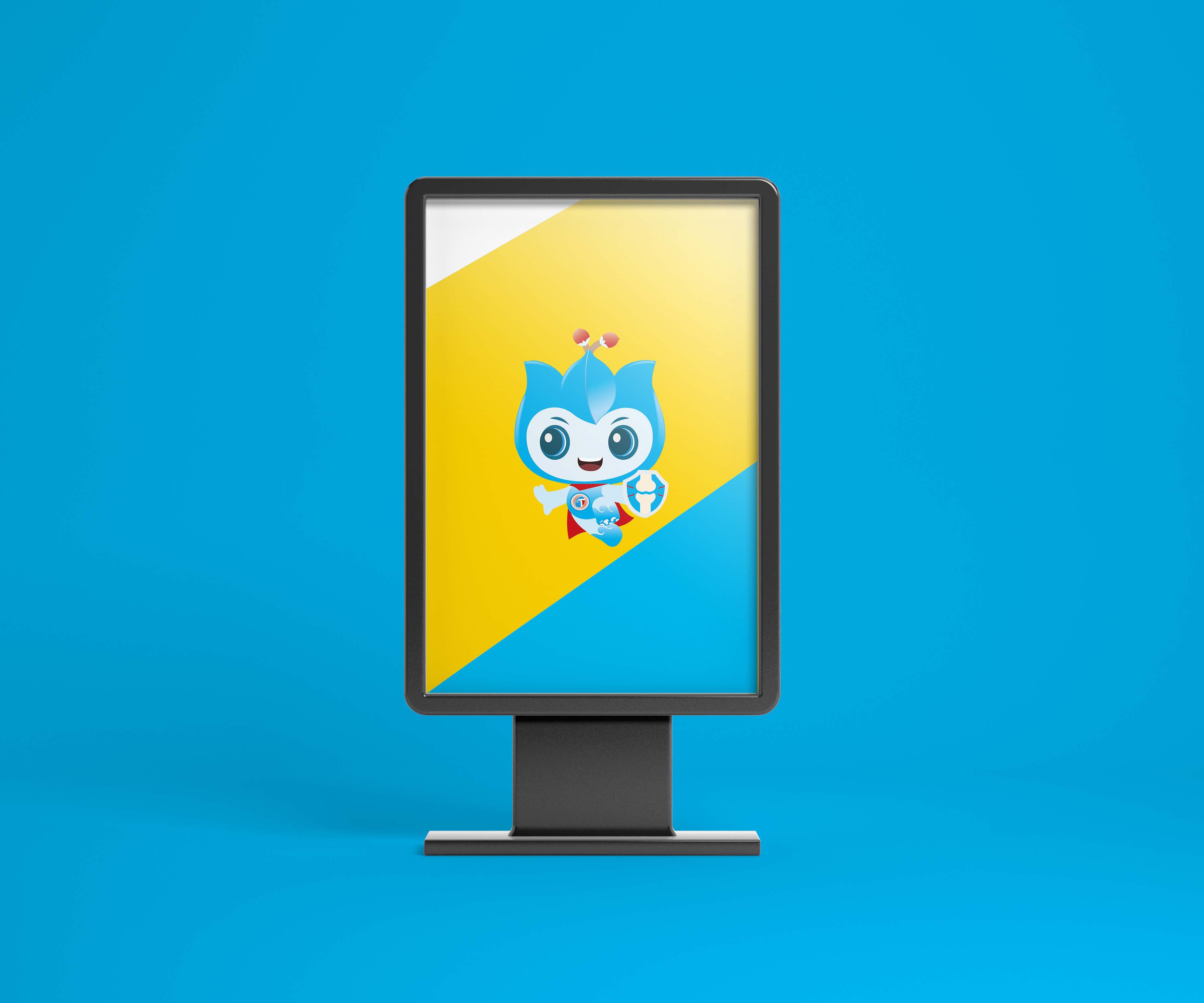 盾牌:關節形態錨定場景:IP胸前盾牌內嵌入抽象的關節圖形,精準錨定“關節不適”的適用場景。這一設計將“守護關節健康”的核心價值具象為可識別的視覺符號,形成強大的場景聯想。